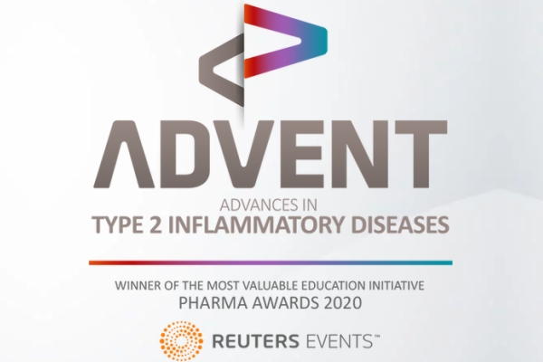 Em 2020, o ADVENT recebeu a premiação de melhor plataforma de educação médica pela Reuters Pharma. O ambiente online interativo tem o objetivo de educar o público médico e contribuir na redução do ônus das doenças inflamatórias Tipo 2, por meio de um programa de educação com foco no paciente e que incorpora as publicações mais recentes produzidas por especialistas mundiais.