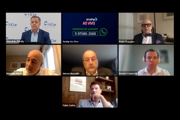 O evento foi transmitido no canal oficial da Anahp no Youtube. Com mediação do CEO do Hospital do Coração – Hcor, Fernando Torelly, a webinar contou com as participações do diretor geral do Hospital Israelita Albert Einstein, Henrique Neves; do diretor Jurídico da Rede Ímpar, Fábio Cunha; do presidente-executivo do Sindicato da Indústria de Produtos Farmacêuticos (Sindusfarma), Nelson Mussolini; do superintendente da Associação Brasileira da Indústria de Artigos e Equipamentos Médicos, Odontológicos, Hospitalares e de Laboratório (ABIMO), Paulo Henrique Fraccaro; e do vice-presidente de Relações Institucionais da UnitedHealth Group, Renato Cazarotti.