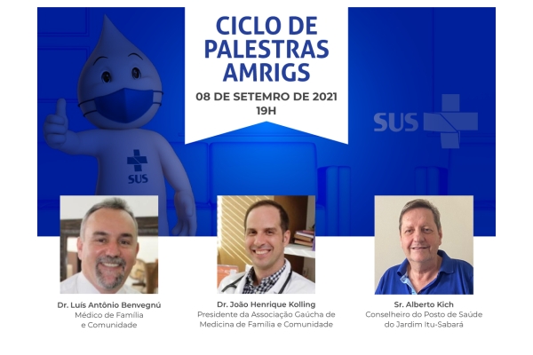 Com o título O SUS de aniversário: Como utilizar o que o SUS nos oferece, a edição de setembro do Ciclo de Palestras AMRIGS tem como objetivo explicar de que maneira o Sistema Único de Saúde, tão importante no combate a pandemia da COVID-19, é gerenciado e as diversas formas de usufruí-lo. A transmissão será pela plataforma Sympla Streaming, a partir das 19h da quarta-feira (08).