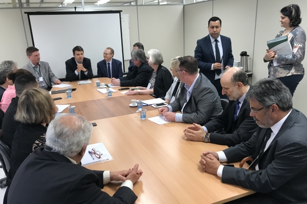 O Sistema FEHOSUL (Federação de Hospitais e Estabelecimentos de Saúde do Rio Grande do Sul) e a Associação dos Hospitais e Estabelecimentos de Saúde do RS (AHRGS) participaram com lideranças do segmento de reunião com o IPE-Saúde, na quarta-feira (30), na sede do órgão estadual, em Porto Alegre. Na ocasião, o presidente da FEHOSUL e AHRGS, Cláudio Allgayer, entregou um ofício contendo reivindicações das entidades ao IPE-Saúde, representado pelo seu presidente, Marcus Vinicius de Almeida, pelo diretor de provimento de saúde, médico Antônio Quinto Neto, e os diretores de Relacionamento com o Segurado e Administrativo-Financeiro, Paulo Ricardo Gnoatto e Henrique Hermany, respectivamente.