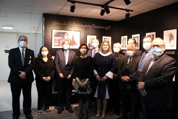 Janice Maria Almeida Kruse, filha do fundador do hospital, Jahyr Boeira de Almeida, e os ex-superintendentes Afonso Calil Mury Mallmann, Cláudio José Allgayer, Cláudio José de Souza Sebenelo, Rogério Dalfollo Pires, João Constantino Pavani Motta, Carlos Eduardo Nery Paes e Adriana Denise Acker, compareceram à cerimônia de inauguração da Galeria de Ex-Superintendentes/Presidentes.