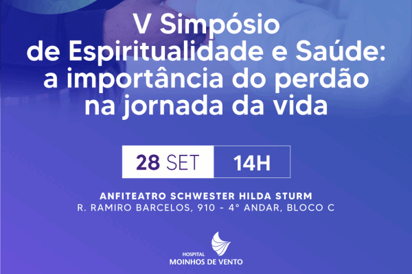 O Hospital Moinhos de Vento promove, na próxima quinta-feira (28), a quinta edição do Simpósio de Espiritualidade e Saúde. Com o tema “A importância do perdão na jornada da vida”, a programação presencial acontece a partir das 14h, no Anfiteatro Schwester Hilda Sturm, reunindo representantes das religiões cristã, budista e espírita kardecista.