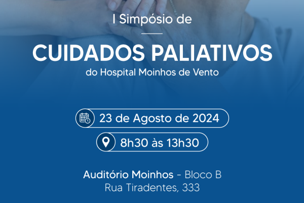 A importância dos cuidados paliativos em pacientes que enfrentam uma doença incurável e progressiva e como isso impacta em seus familiares é o tema do I Simpósio de Cuidados Paliativos. O evento será promovido pelo Hospital Moinhos de Vento, no dia 23 de agosto, das 8h30 às 13h30. As inscrições para a atividade, que ocorrerá no formato híbrido, são gratuitas e podem ser feitas pelo link.