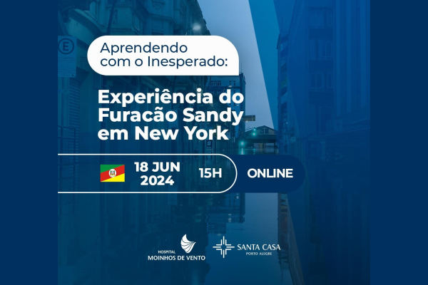 O Hospital Moinhos de Vento e a Santa Casa de Porto Alegre promovem, na terça-feira (18), o evento “Aprendendo com o Inesperado: Experiência do Furacão Sandy em Nova York”. Com transmissão online e com tradução simultânea, a iniciativa contará com a presença de gestores internacionais da área da saúde.