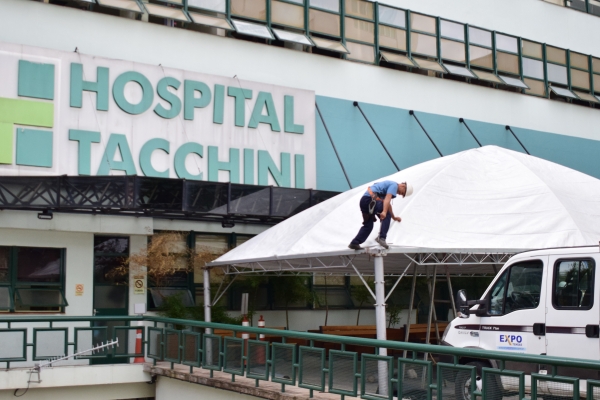 Hospital Tacchini monta estrutura para triagem de casos suspeitos de Coronavírus