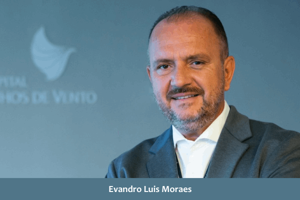 Evandro Moraes: Profissional com 36 anos de carreira, tendo foco na alta gestão estratégica de grandes corporações. Conhecimento agregado nos últimos 10 anos do segmento hospitalar e de saúde, sendo responsável direto por áreas de apoio e geradoras de resultados ao negócio do Hospital Moinhos de Vento em Porto Alegre: Suprimentos (Compras e Logística de Materiais), Infraestrutura (Engenharias Clínica, Predial, Eletromecânica e Obras), Tecnologia da Informação (hardware, software, dados e inovação), Saúde Digital (Telemedicina), Gestão Ambiental, Segurança Patrimonial e Estacionamentos. Administrador de formação, possui educação executiva pela Harvard Business School em “Valor no Cuidado à Saúde”, Pós-MBA pela Fundação Getúlio Vargas em “Inteligência em Negócios”, MBA executivo internacional pela University of California em “Gerenciamento de Negócios” e MBA pela Fundação Getúlio Vargas em “Supply Chain Management”. É professor convidado do programa de MBA em Gestão na Saúde da PUC/RS na disciplina de “Sustentabilidade em Saúde”, professor convidado da pós graduação em saúde da Faculdade Unimed, professor convidado do MBA em Saúde da Faculdade Moinhos de Vento e um dos 100+ influentes da saúde no Brasil em 2022 e 2023 pelo Grupo Mídia.