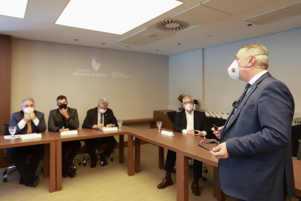 Também participaram da visita os outros superintendentes do hospital e chefes dos serviços médicos. O ministro estava acompanhado do secretário de Atenção Primária do Ministério da Saúde, Raphael Câmara, do senador Luis Carlos Heinze e do deputado federal Pedro Westphalen, além de lideranças técnicas da pasta.