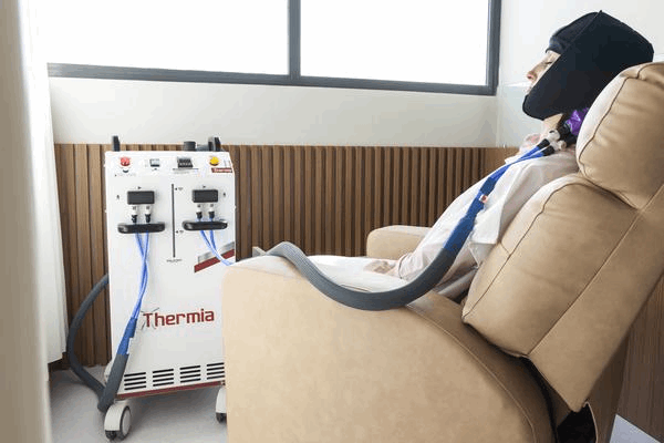 A técnica funciona através da circulação de água fria em uma touca. O equipamento mantém 100% de resfriamento na área de contato com o acessório. É silencioso, confiável e de baixa necessidade de intervenção da equipe médica.