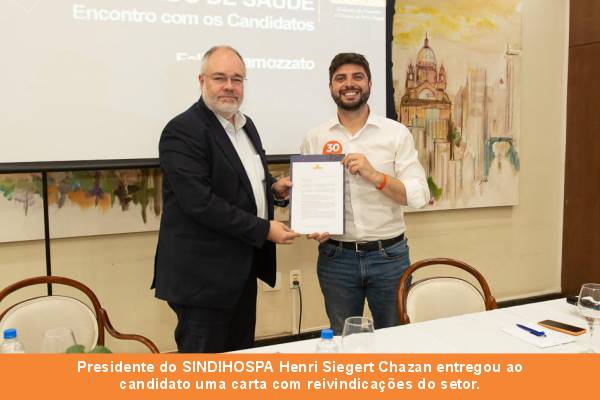 “Essa oportunidade de diálogo é fundamental para, juntos, construirmos uma saúde melhor para toda a população. Estaremos ao lado do poder público para essa construção”, afirmou o presidente do Sindicato, Henri Siegert Chazan, que entregou ao candidato uma carta com reivindicações do setor.
