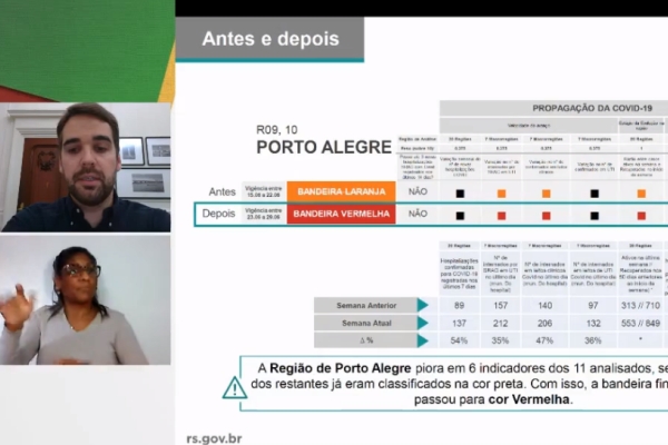 Após seguidos alertas da piora em hospitalizações por Covid-19 e da ocupação de leitos clínicos e de UTI, a macrorregião metropolitana ficou em sua quase totalidade em bandeira vermelha. Apenas a região de Taquara, que tem apresentado bons indicadores desde o início da pandemia, conseguiu a manutenção de bandeira amarela.