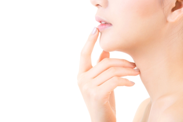Afaste o lábio inferior e o superior e toque a região para ver se existe alguma ferida, mancha ou coloração diferente.