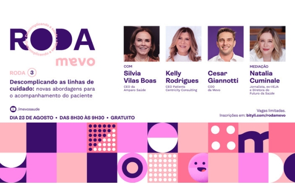 Desta vez, o fio condutor da Roda Mevo é o tema “Descomplicando as linhas de cuidado: novas abordagens para o acompanhamento do paciente”, e acontece das 8h30 às 9h30 da manhã de 23 de agosto. Cesar Giannotti, sócio e COO da Mevo, e Natalia Cuminale, jornalista de saúde e diretora do Futuro da Saúde, recebem Silvia Vilas Boas, CEO da Amparo Saúde, e Kelly Rodrigues, CEO da Patients Centricity Consulting, para um bate-papo descontraído sobre o assunto. Aspectos como a trajetória e o avanço das Linhas de Cuidado no Brasil, sua atuação perante a crescente transformação digital da saúde e também expectativas para o futuro são alguns dos tópicos a serem abordados.