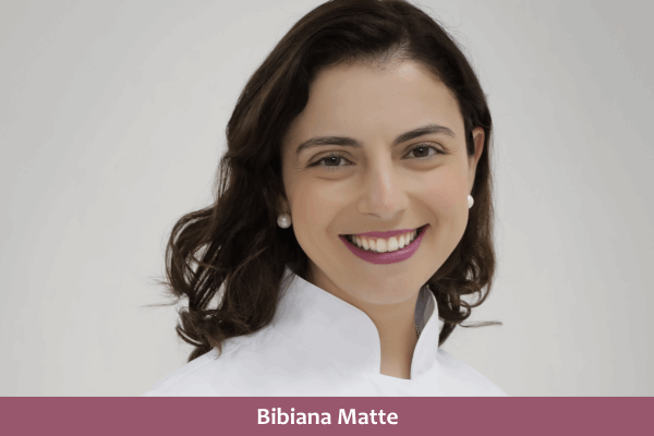Bibiana Matte é graduada em Odontologia pela UFRGS. Participou do programa Ciência Sem Fronteiras na University of Michigan (EUA), onde teve seu primeiro contato com cultivo celular. Pelos resultados desenvolvidos e encontrados durante pesquisas na graduação, recebeu o Prêmio de Jovem Pesquisador na área da saúde na UFRGS. Realizou seu doutorado na mesma instituição, com um período de estudos na University of California San Diego, quando desenvolveu diferentes técnicas de engenharia de tecidos.