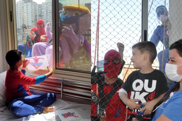 Realizada desde 2016 em parceria com a Executar Alpinismo Industrial, a ação é o momento mais esperado pelos pacientes internados na instituição durante o mês de outubro. O Taylor, de 10 anos, vestiu a roupa do seu super-herói favorito e foi surpreendido na janela do quarto. “Foi muito legal poder ver os super-heróis hoje. Meu sonho era conhecer o Homem-Aranha e hoje eu pude ver ele de pertinho”, contou.