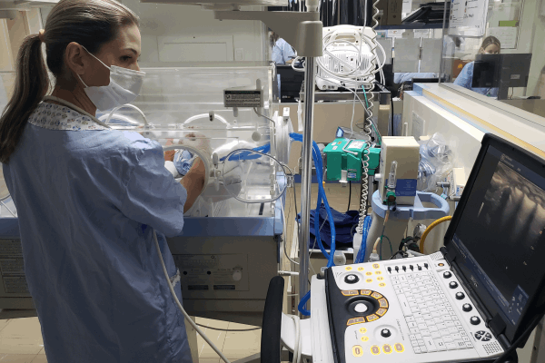Desde fevereiro de 2022, as UTIs Neonatal e Pediátrica do Hospital Tacchini, em Bento Gonçalves (RS), possuem um recurso importante para acelerar a recuperação dos pequenos pacientes: a Ultrassonografia Cinesiológica. Além de ser um método de diagnóstico confiável, não invasivo e livre de radiação, o exame de imagem pode ser realizado rapidamente à beira do leito do paciente, permitindo avaliação dinâmica das modificações funcionais pulmonares.