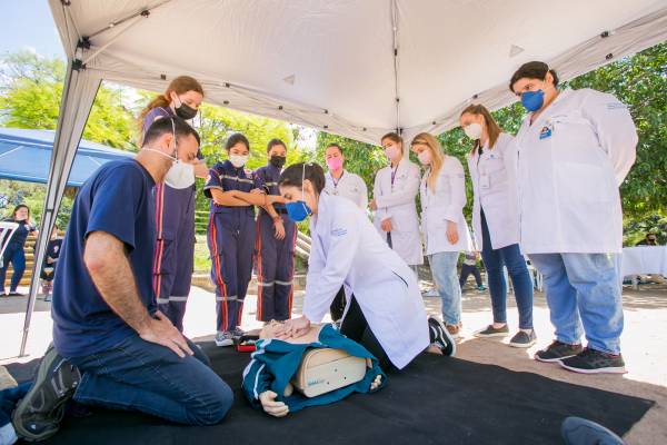 Neste domingo (24), o Hospital Moinhos de Vento realizou treinamentos gratuitos de reanimação cardiopulmonar (RCP) no Parcão, em Porto Alegre (RS). A iniciativa ocorreu em parceria com a Prefeitura de Porto Alegre, SAMU e Sociedade de Cardiologia do Estado do Rio Grande do Sul (SOCERGS). Médicos, enfermeiros e técnicos de enfermagem utilizaram 15 bonecos e desfibriladores externos automáticos (DEA) para capacitar cerca de cem pessoas durante as três horas de evento, além de reunir frequentadores que passavam pelo local.